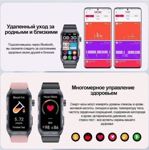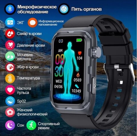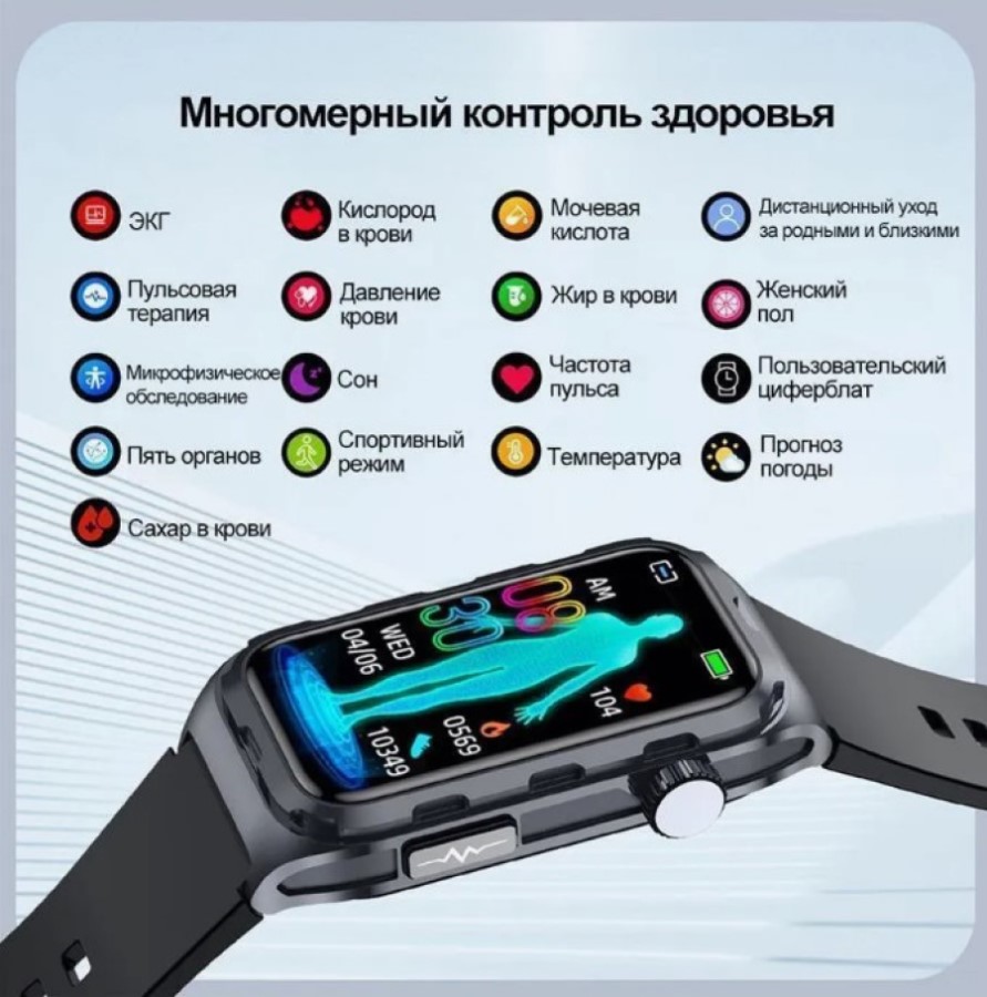 Смарт часы Глюкометр XRide TK79 - температура тела, сахар в крови, ЭКГ, давление