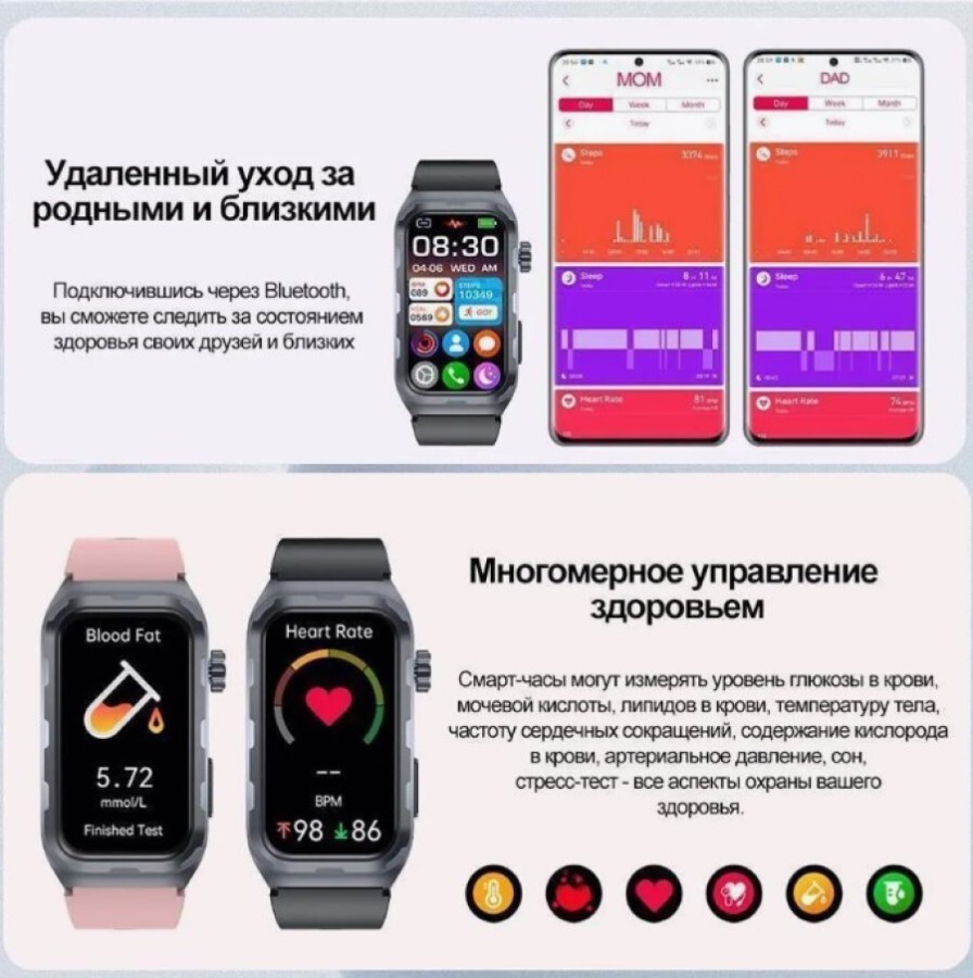 7.Удаленный уход за семьей и друзьями, несколько спортивных режимов, индивидуальный набор и рынок нескольких циферблатов.